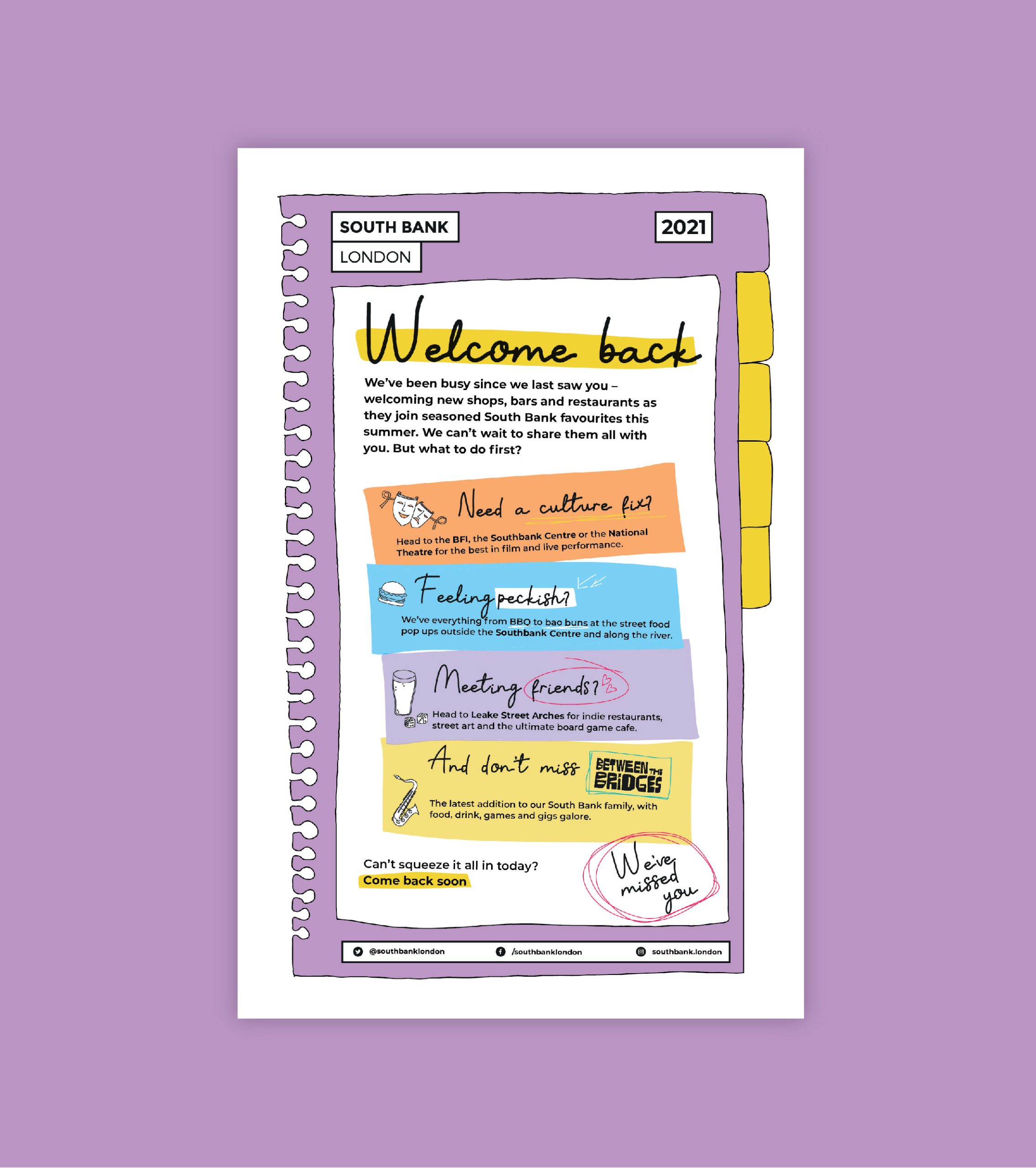 Art, theatre, music, food and fun; London’s South Bank has it all. We’ve all missed putting these things in our diaries, haven’t we? South Bank London needed a campaign to bring people back to the area at a time where they were still hesitant to travel into London.